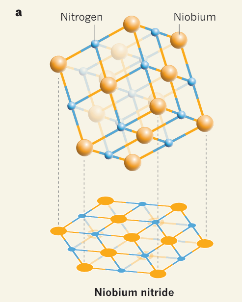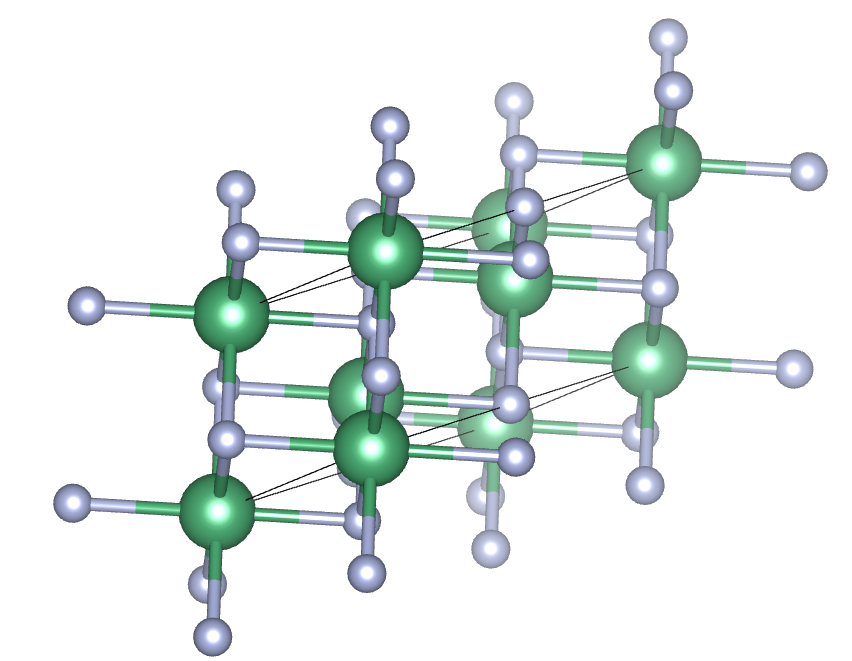 Niobium Nitrite(NbN) is a superconducting crystal that has applications to modern quantum technology. Over the summer, I have been working on simulations of the crystal structure of this material using Density Functional Theory. The structure of an NbN crystal is a rocksalt structure, i.e. all atoms lie on the cartesian lattice of \(\mathbb R^3\). Another way to view this crystal is in the direction of the main diagonal, or in crystallographic terms, in the (111) direction. The following diagram nicely summarizes this result.