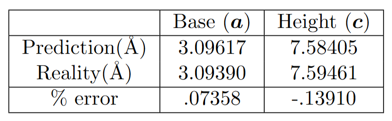 Table. Compared values of the predicted and computed lattice parameters.